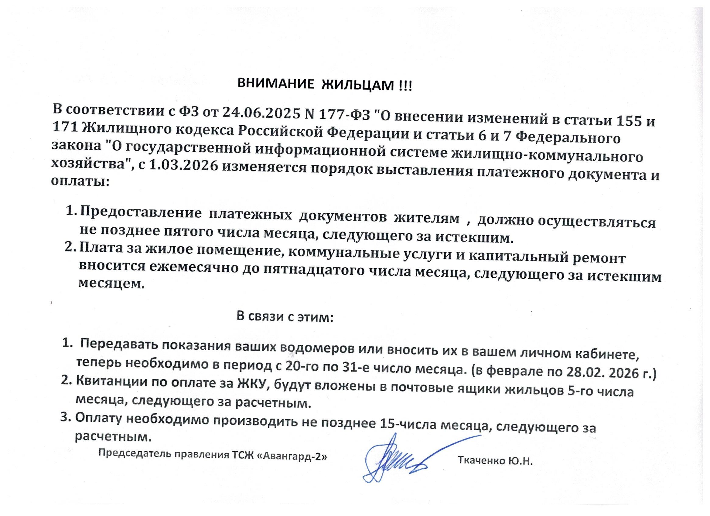 Объявление об изменении сроков сдачи показаний водомеров